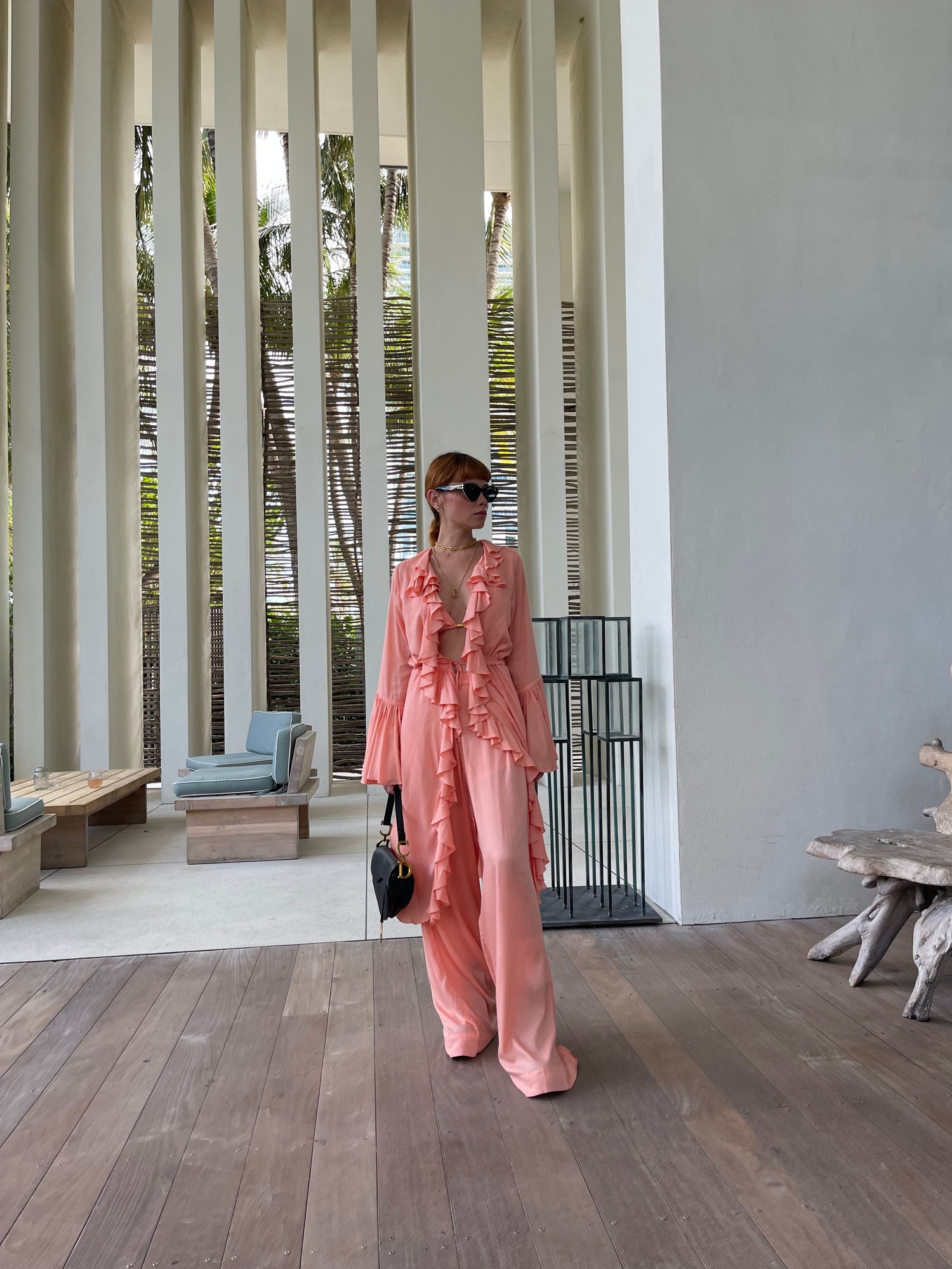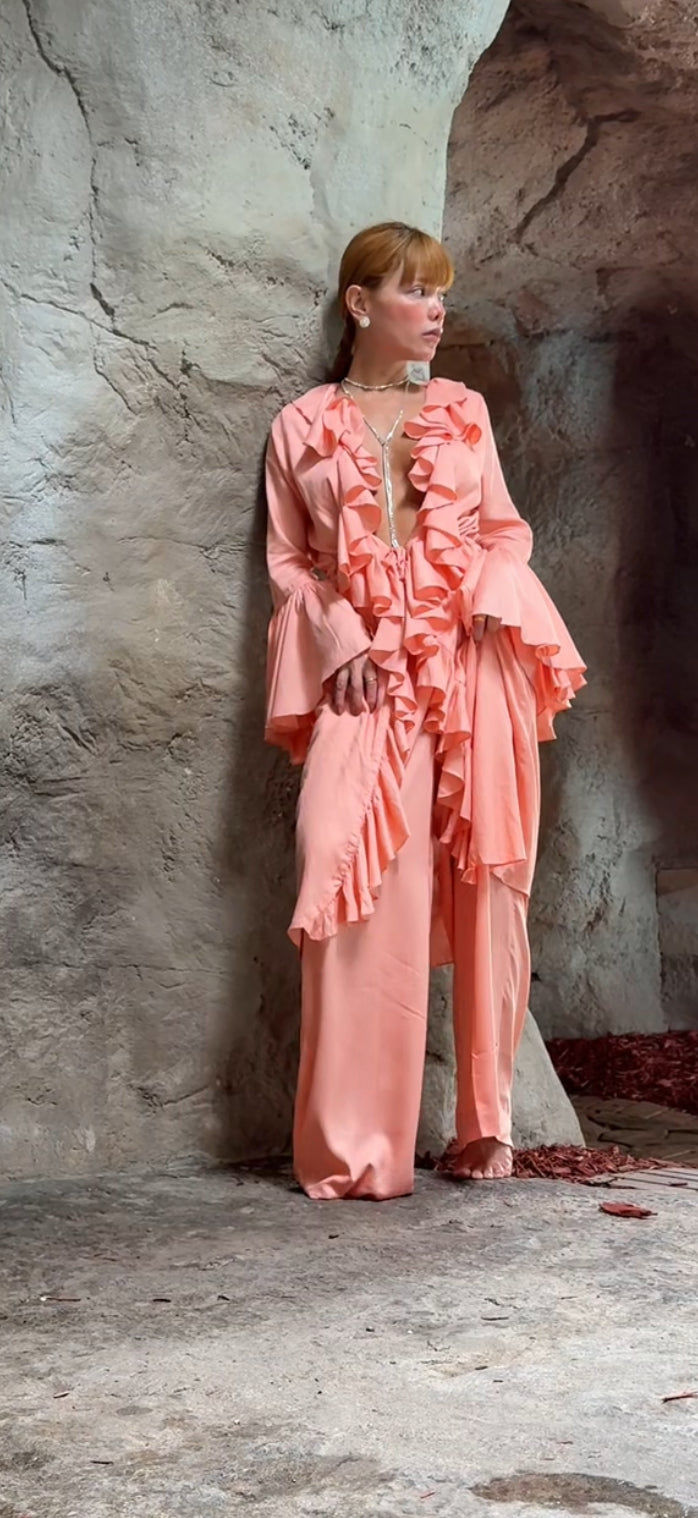 Lightweight pants crafted from fluid fabric, offering comfort, movement, and an elegant silhouette.